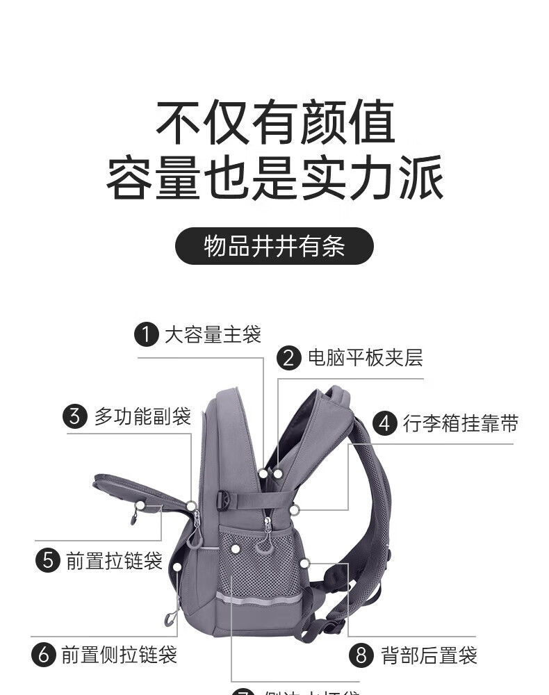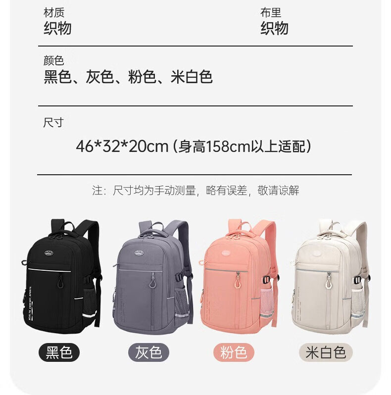 型 號:88186大號 尺 寸:460*320*200(MM) 材 質:織物 賣點: 輕便減負款/多色可選,小學/初中 描述: 1.可定制絲印、刺繡、金屬LOGO; 2.采用 防潑水面料,經久耐用; 3.超大容量設計可放15寸-16寸電腦; 4.主袋內加厚電腦隔層; 5.彈力蜂窩背板、透氣、緩壓、減震; 6:文具收納組,大容量衣物主袋,多隔層設計,兼具功能于時尚.