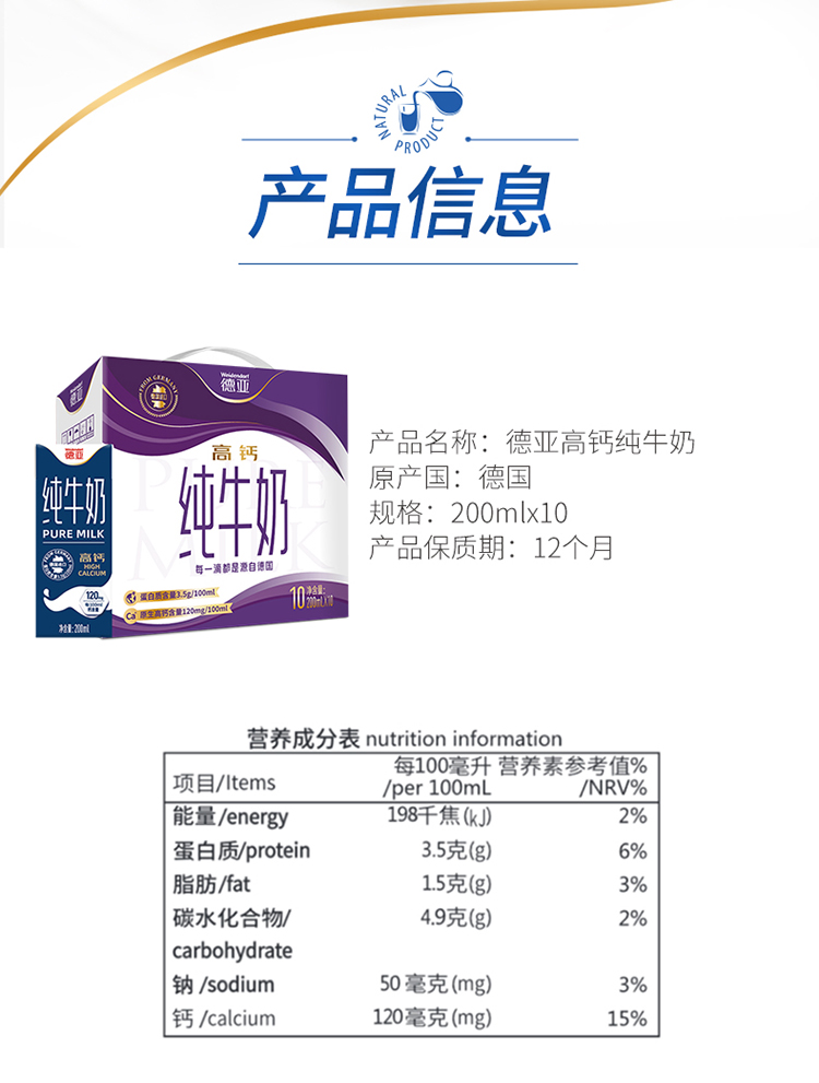 保質期365天 ,德國進口純牛奶
