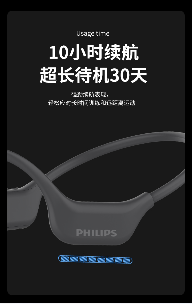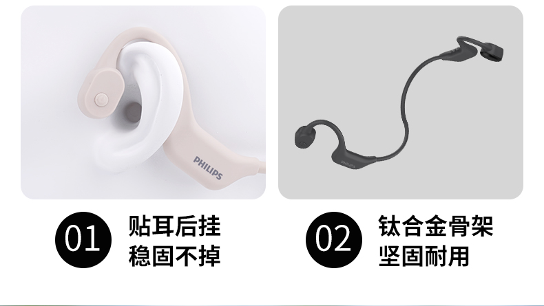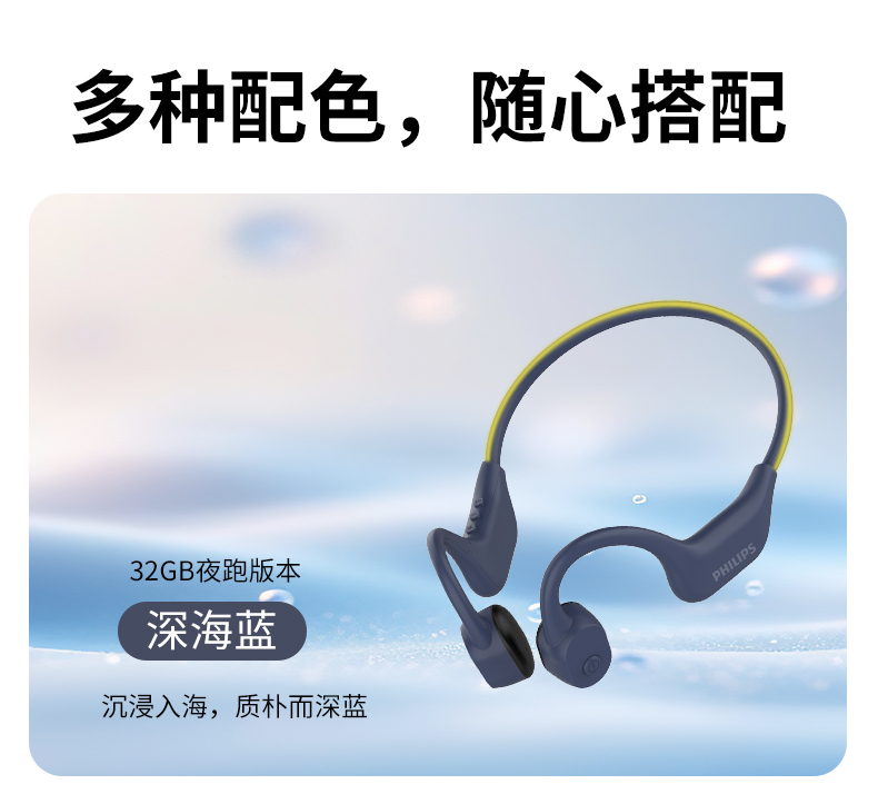 飛利浦骨傳導(dǎo)藍(lán)牙耳機(jī)TAA6609C(32G內(nèi)存+夜跑燈)