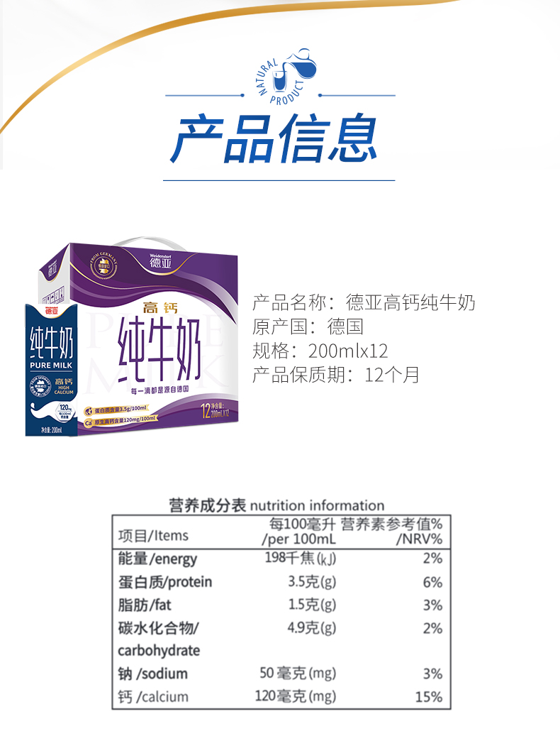 保質期365天 德國進口純牛奶