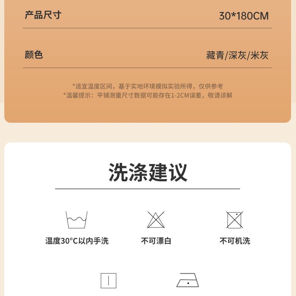 類別:圍巾 顏色:深灰、藏青、米灰 面料:53.9%聚酯纖維20.7%錦綸20.6%腈綸 4.8%綿羊毛 規格:180x30cm 風格:英倫 輕柔溫暖,羊毛圍巾 匠心設計,彰顯品位,采用優質羊毛,觸感柔軟,溫暖而透氣,優質面料柔軟不起球,鎖邊細膩平整,時尚簡約,版型挺括 親膚柔軟 絨入舒適感,舒適親膚 經典純色百搭,鎖溫發熱科技 暖化生活每一刻,細節恰到好處 傳達真摯心意