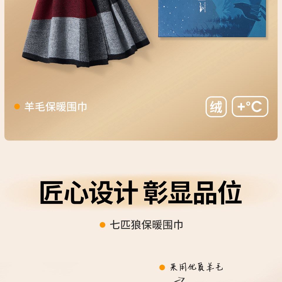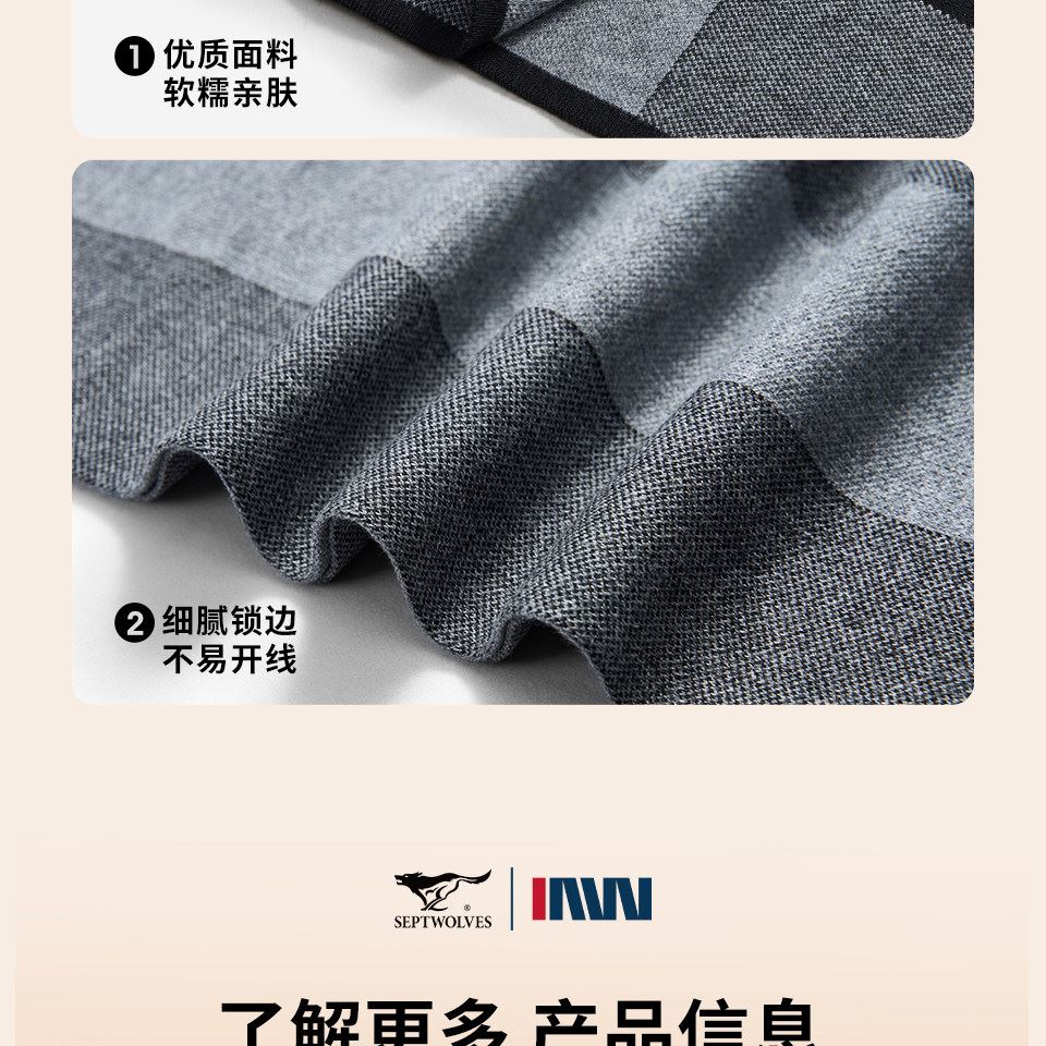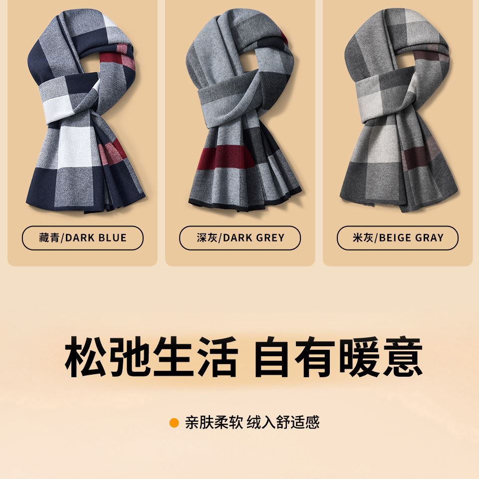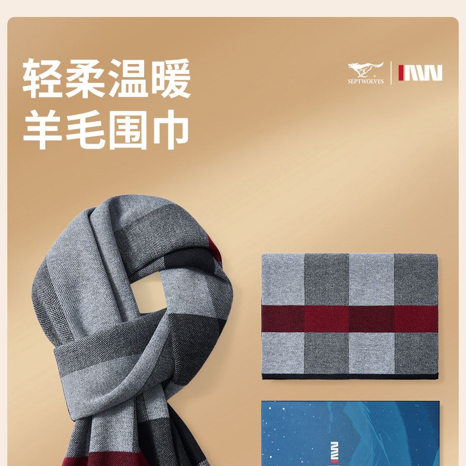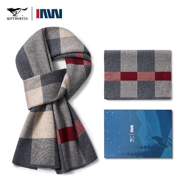 七匹狼圍巾格子含羊毛加絨加厚保暖圍脖645013-2 禮品已成功加入PPT!