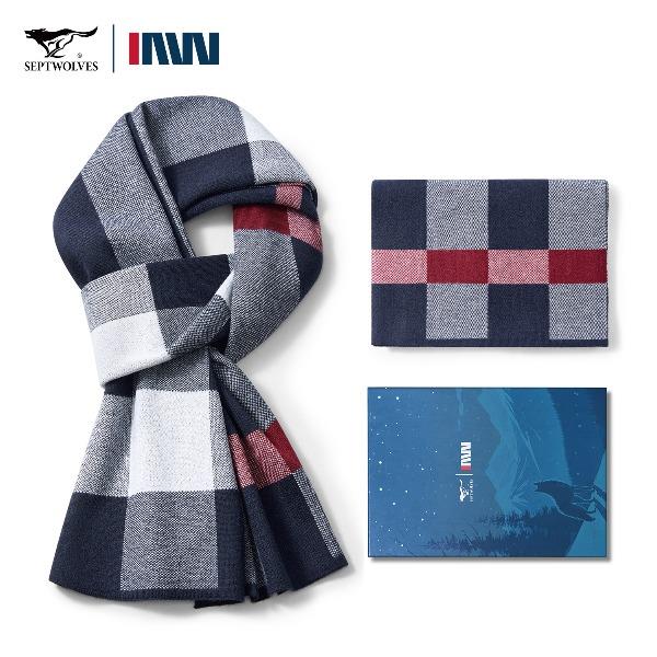 七匹狼圍巾格子含羊毛加絨加厚保暖圍脖645013-2 七匹狼圍巾格子含羊毛加絨加厚保暖圍脖645013-2